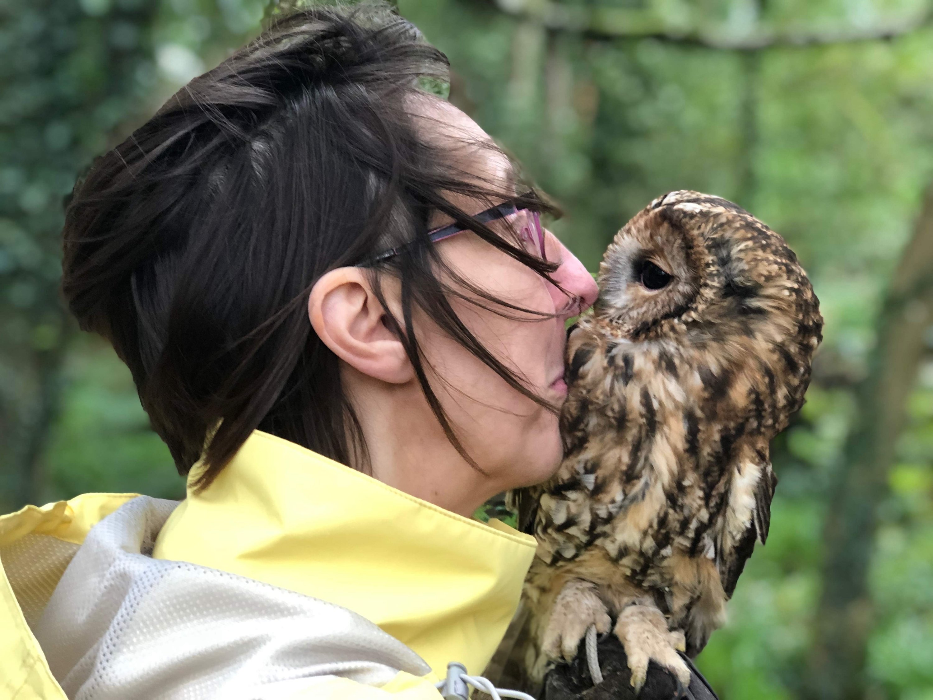 When we got back to the van, Charlie was put away and Ryley and Ziggy came out, two different breed of owls. Michele had Ryley who was very affectionate and John captured the best moment of our trip!!